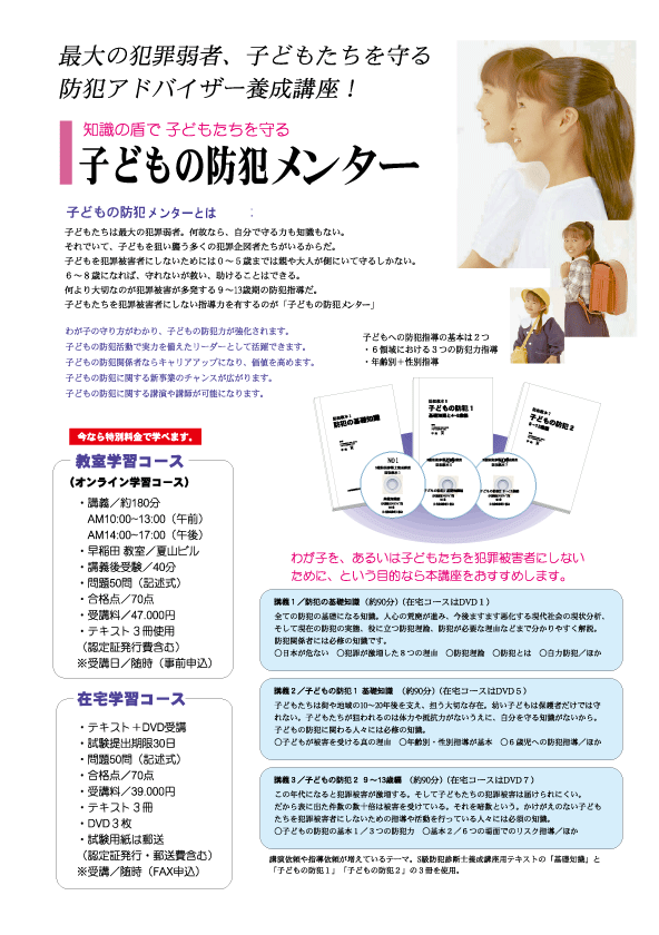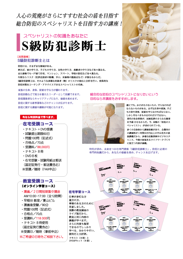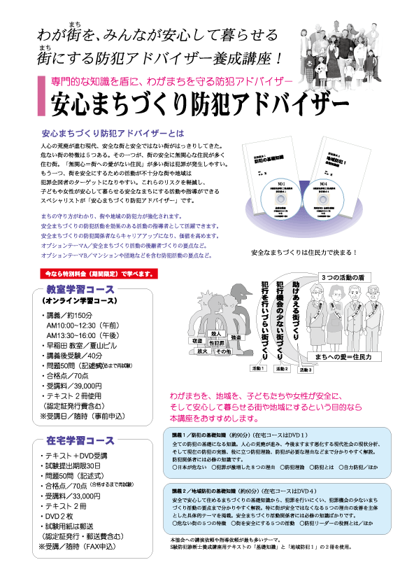 安全なまちづくりの防犯アドバイザーを目指す方の専門的講座
