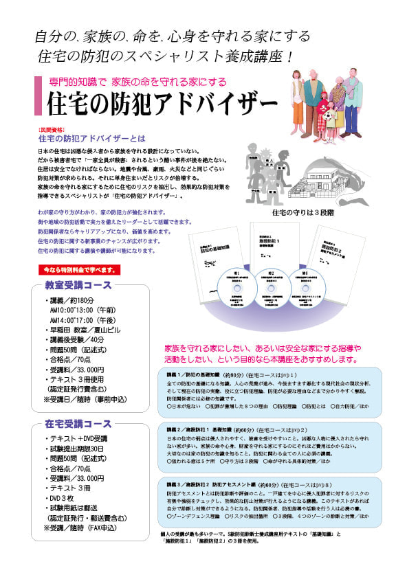 専門家、住宅の防犯アドバイザーの養成講座です。